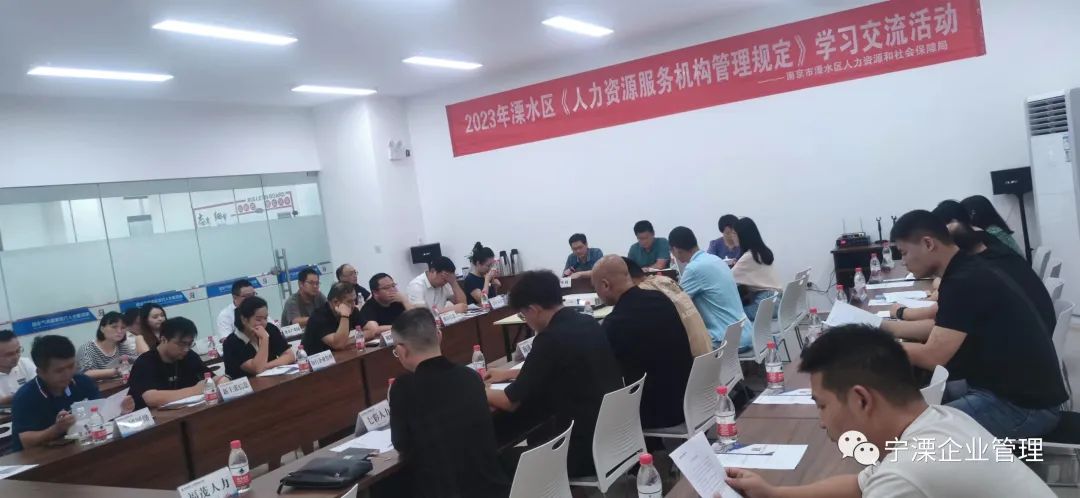 随着社会的发展和经济的进步,人力资源管理在企业和组织中的地位越来越重要。为了规范人力资源服务机构的管理,提高服务质量,2023年9月8日(周五)下午溧水区人力资源和社会保障局在溧水人力资源服务产业园举办了我区《人力资源服务机构管理规定》学习交流活动。