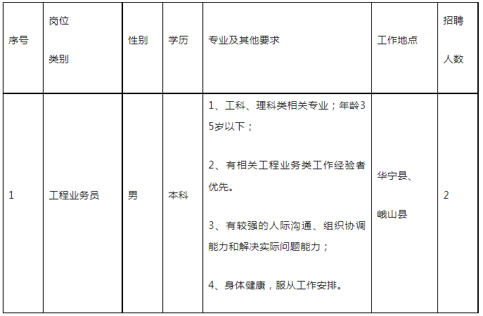 3、招聘条件:限男性,年龄在40岁以下,高中及以上学历;拥护中国共产党的领导,坚持党的路线、方针、政策、品行端正、遵纪守法、吃苦耐劳、有较强责任心,能熟练使用电脑及办公软件,对数据敏感,工作认真;