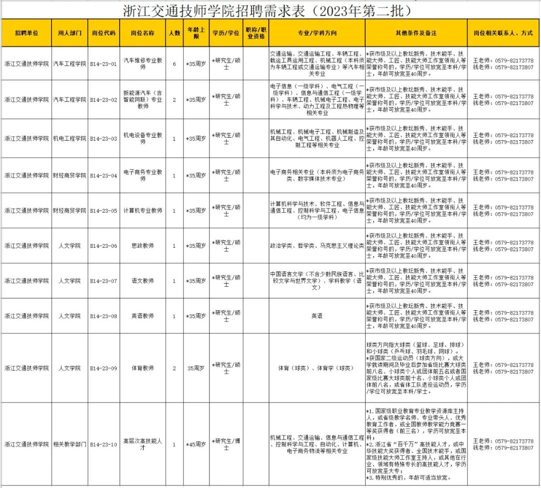 1.浙江交通技师学院招聘需求表(2023年第二批)