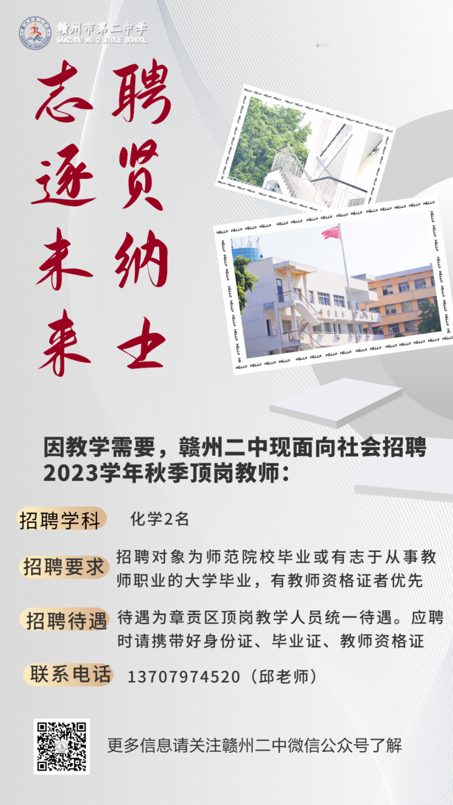 一、招聘科目及人数:初中物理、化学学科(或能胜任物理、化学学科教学)若干名