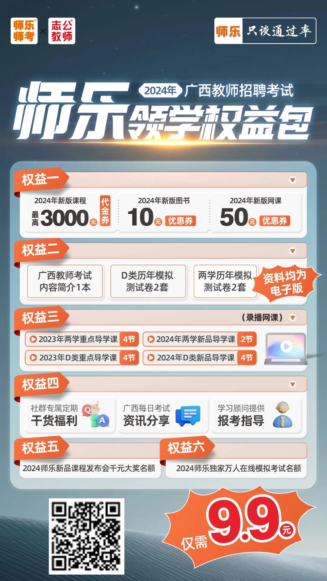 你只需花费9.9元师乐领学权益包