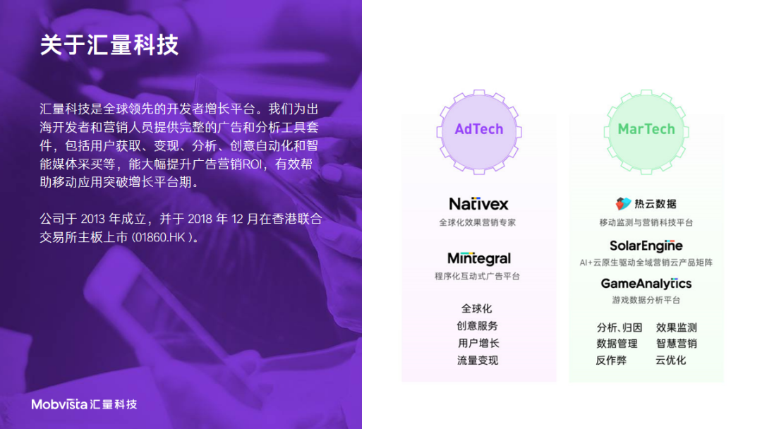Mobvista汇量科技于2013年在中国广州成立,并于2018年12月在香港联合交易所主板上市。