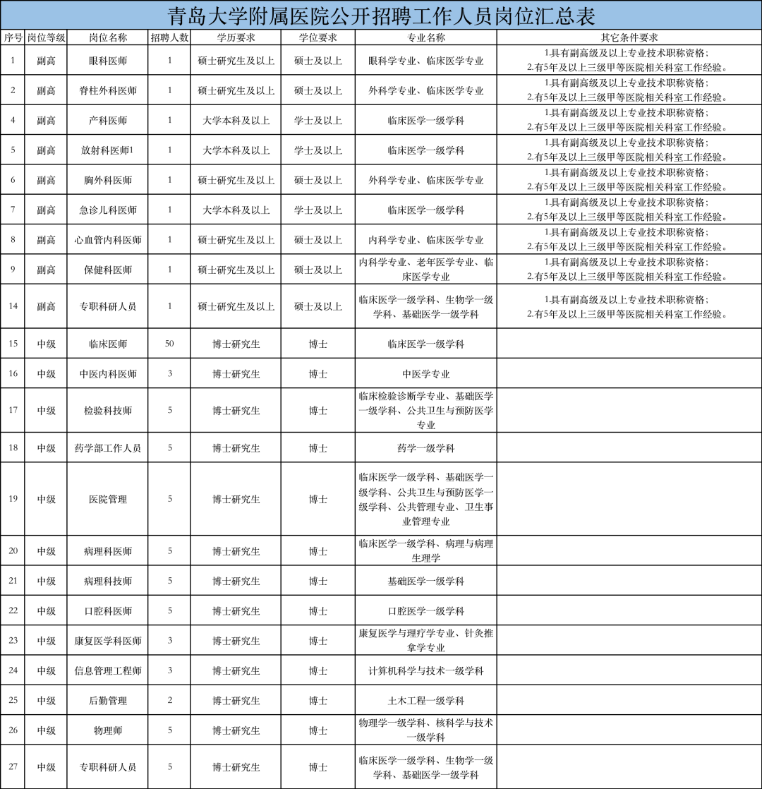 关注!青岛大学附属医院2023年高层次人才及博士公开招聘简章