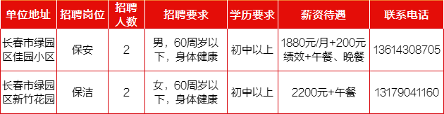 岗位要求:55岁以下,身体健康,无疾病,有责任心