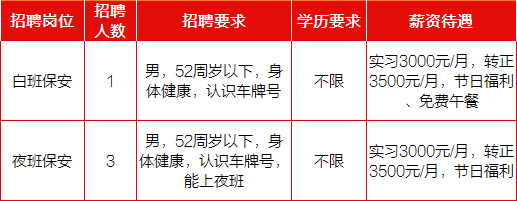 岗位要求:男,60岁以下,身体健康,无慢性疾病,责任心强,需要会写字