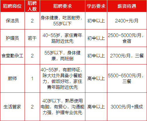 岗位要求:60周岁以下,身体健康,对老人有爱心、责任心