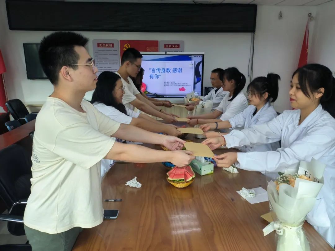 教师节是一个特别的日子,表达着人们对教师的尊重和敬意,更表达着人们对教师的感恩之情。我们除了感谢在学校里教给我们知识的老师,同样我们也应该感谢传授我们一技之长,帮助我们在职场迅速成长的老师。9月8日,由仓山区金山街道问需金洲社区卫生服务站、福州市仓山区上古健康服务中心党支部、泰古康养产业学院举办的“言传身教 感谢有你”教师节主题党日活动在金洲社区开展,在这个即将到来的特殊的节日,组织实习生向他们的“带教老师”送上诚挚的祝福。