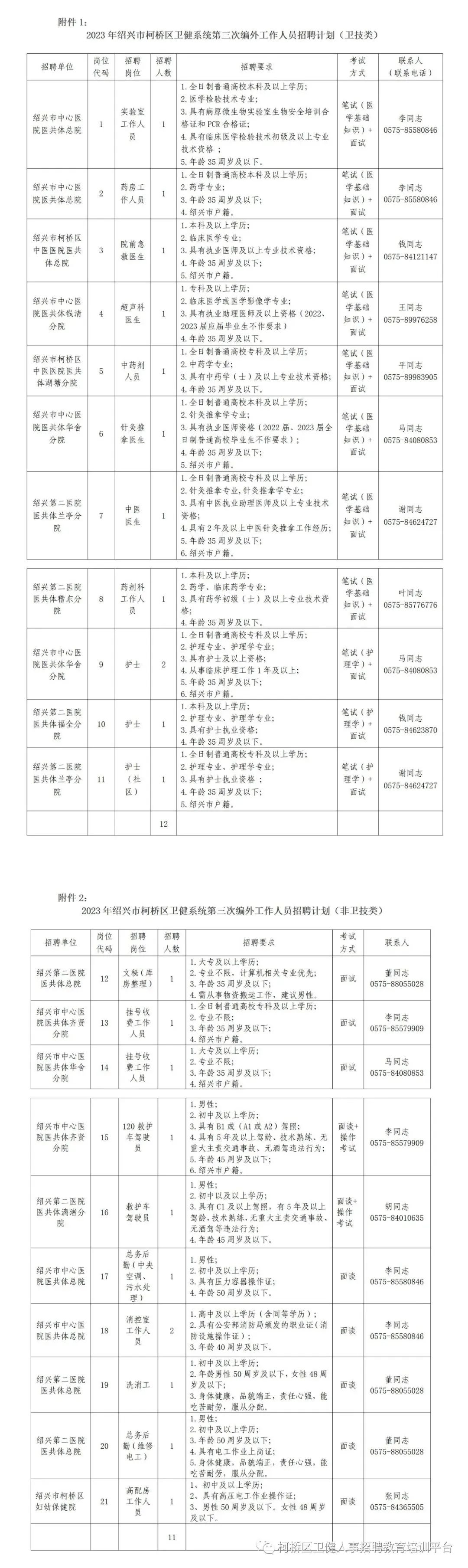 为满足我区卫生健康系统部分事业单位工作需要,经研究,决定组织开展2023年绍兴市柯桥区卫生健康系统第三次编外用工人员招聘工作,现将有关事项公告如下: