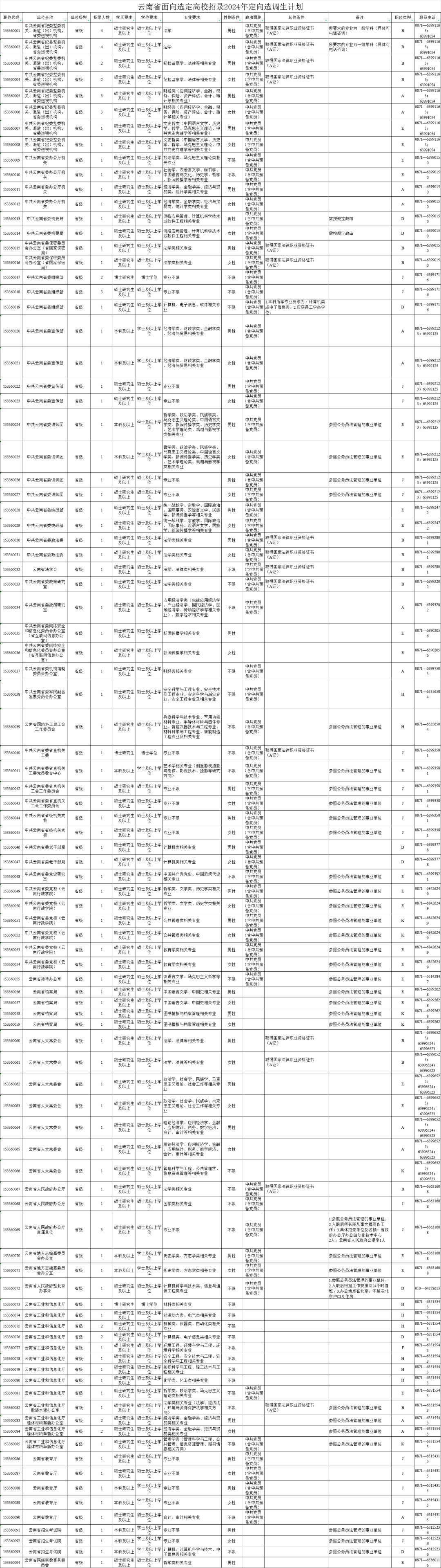 云南省面向选定高校招录2024年定向选调生计划.xls