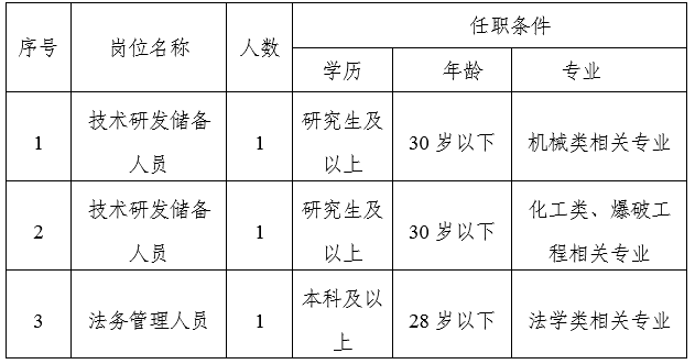 本次招聘岗位3个,需求人数3人,招聘岗位、专业及资格条件具体如下: