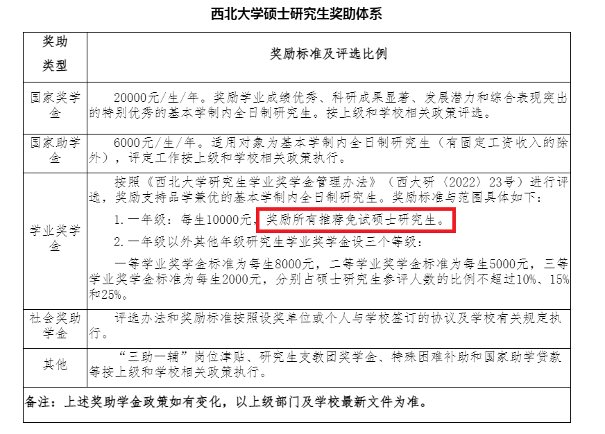 西北大学在23年的招生简章中所公布的奖学金注明:新生奖学金只有推免生能够获得。且高年级学业奖学金金额和覆盖比例都有所下降!