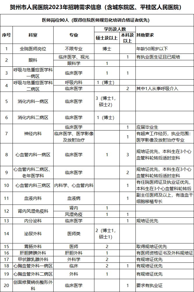 凡通过电子邮件投档到我院人事科的区内外医学院校医学类博士研究生、硕士研究生、本科毕业生以及取得住院医师规范化培训合格证者(不含2024年应届毕业生和2024年取得住院医师规范化培训合格证者)。