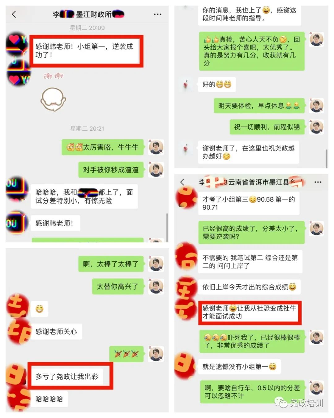 尧政培训的喜报又双叒来啦!2023年上半年我们送走了市卫健委、省卫健委、军队文职和众多事业单位的同学们!其中有逆袭11分小刘同学,有超对手9分的小张同学,还有翻盘了7分的小丁同学,再看还有94.69分的小李同学,超了对手20多分的小柳同学!......太多了都数不完了!
