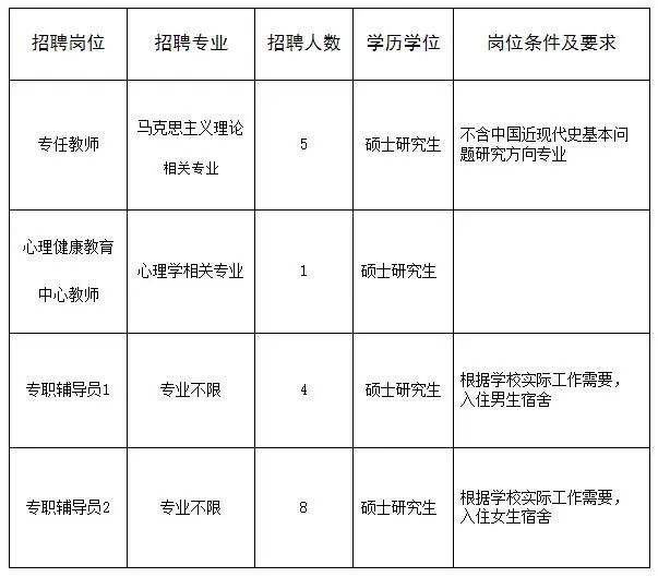 5.2021、2022、2023年毕业的普通高等教育硕士研究生,且第一学历为普通高等教育本科毕业(要求已取得硕士、本科学历学位证)。应聘专任教师岗位者需本硕专业与招聘专业一致或相近;应聘辅导员岗位者专业不限;