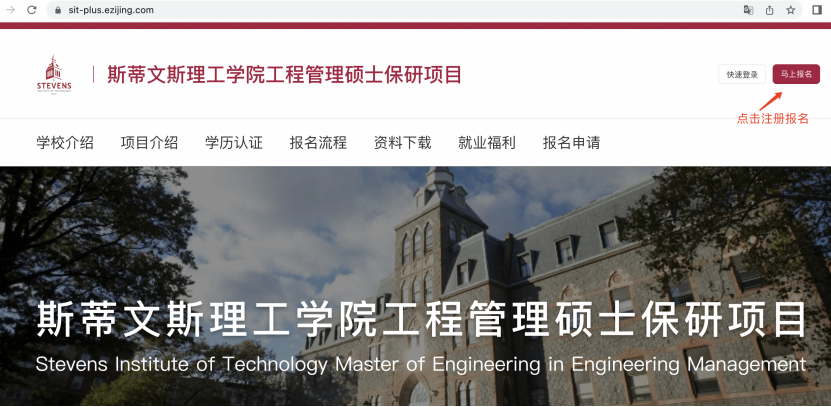 第2步 :进入斯蒂文斯理工学院-工程管理硕士保研项目中国招生与教学中心,斯蒂文斯理工学院官方唯一授权清控紫荆教育负责工程管理硕士保研项目在中国的招生与教学