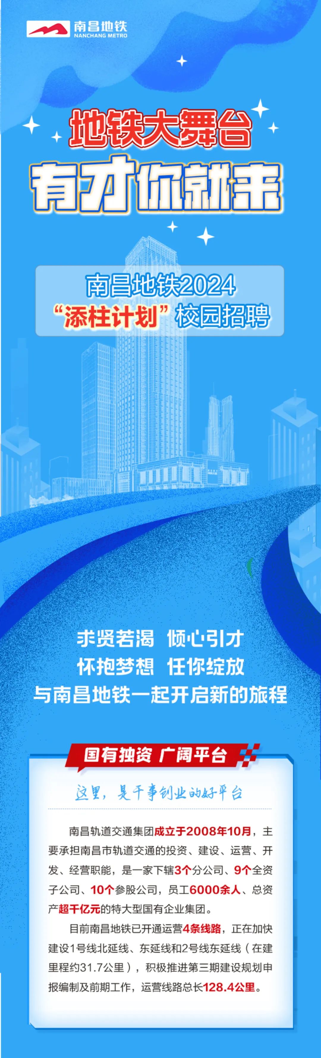 >南昌地铁2024“添柱计划”招聘启动啦! 年薪11万+