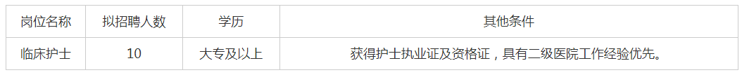 我院因工作需要,拟对外招聘护理人员10名,现将招聘有关事项公告如下: