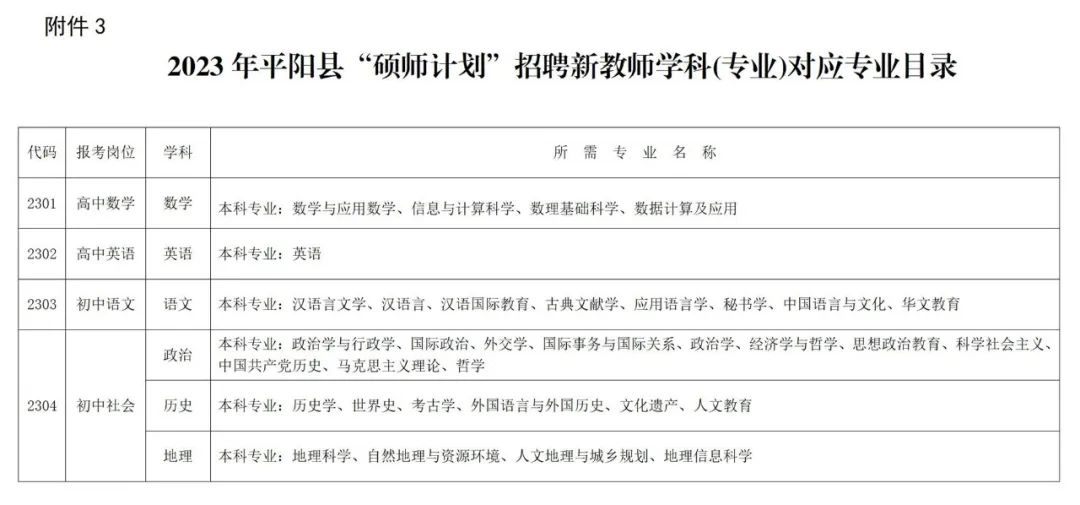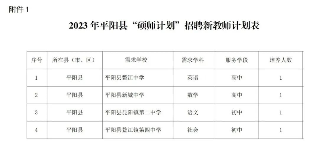根据平阳县教育局、平阳县人力资源和社会保障局联合发文的《关于在2024届全日制普通本科优秀毕业生中开展“硕师计划”招聘新教师的公告》(文末左下角可以点击,可原文阅读),你还需要仔细阅读文件要求哦。