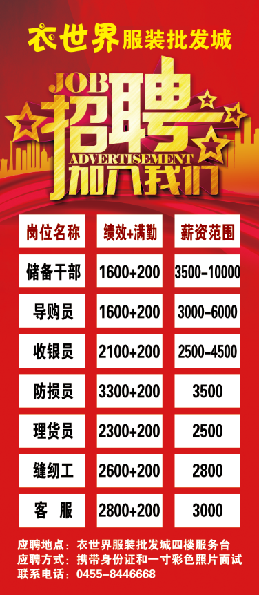 要求:年龄25岁-35岁,高中学历以上,有团队精神,有管理工作经验者优先。(每天带薪休假2天)