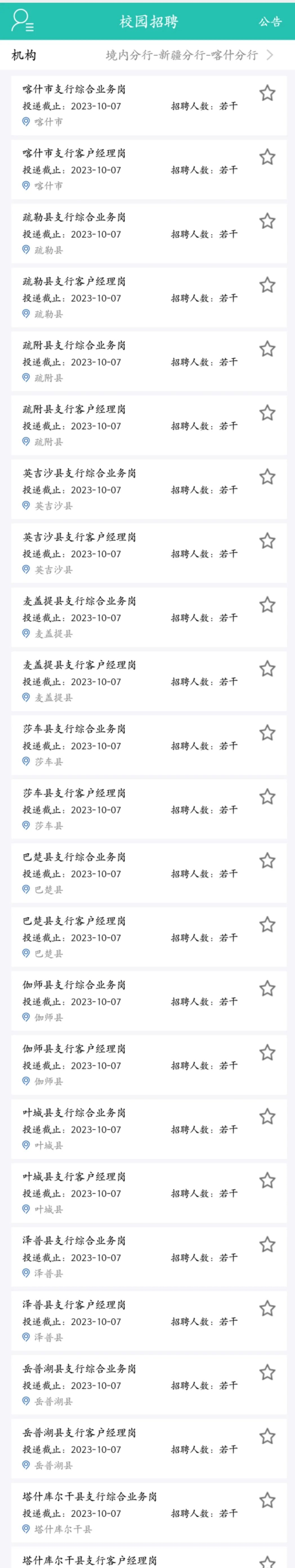 (含莎车岗位)