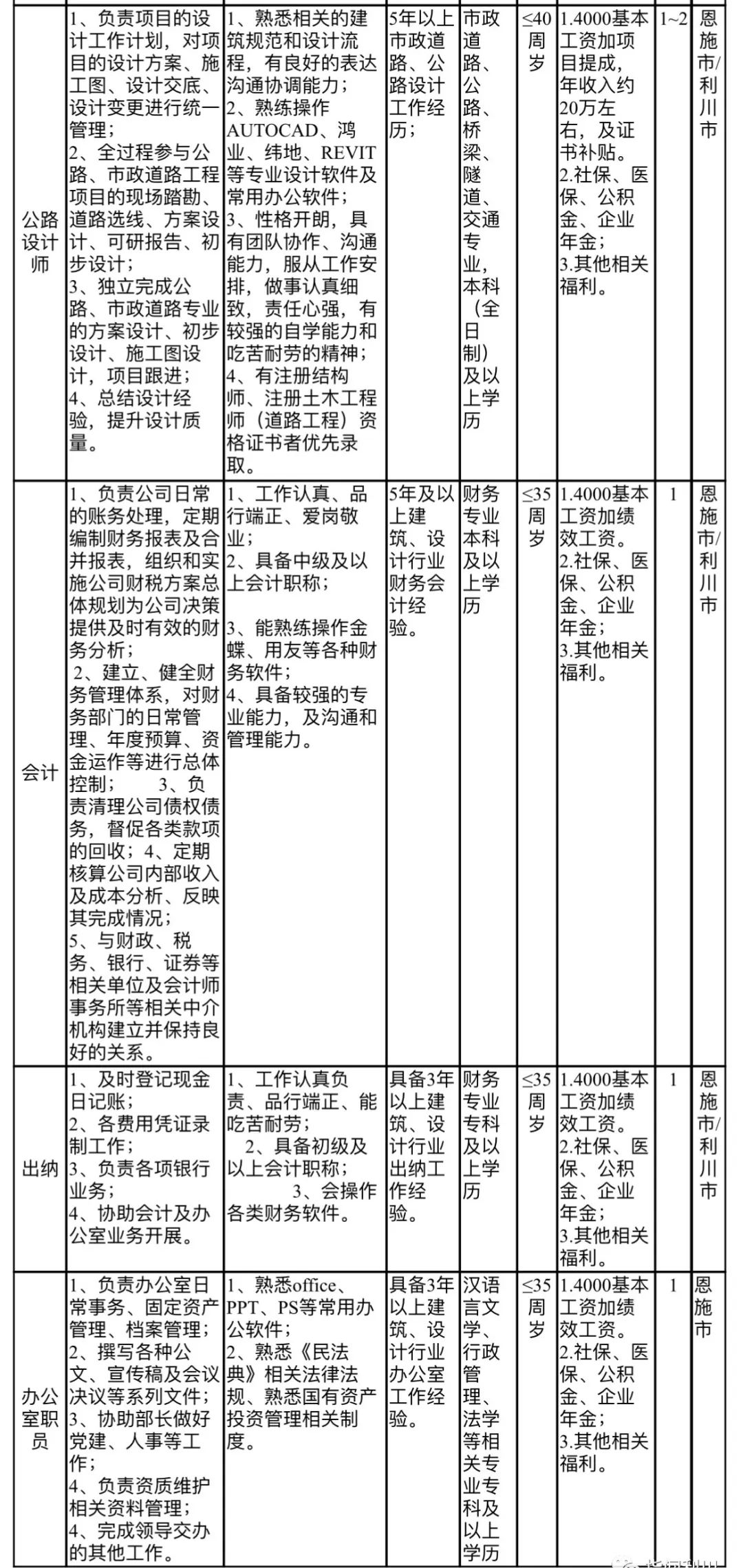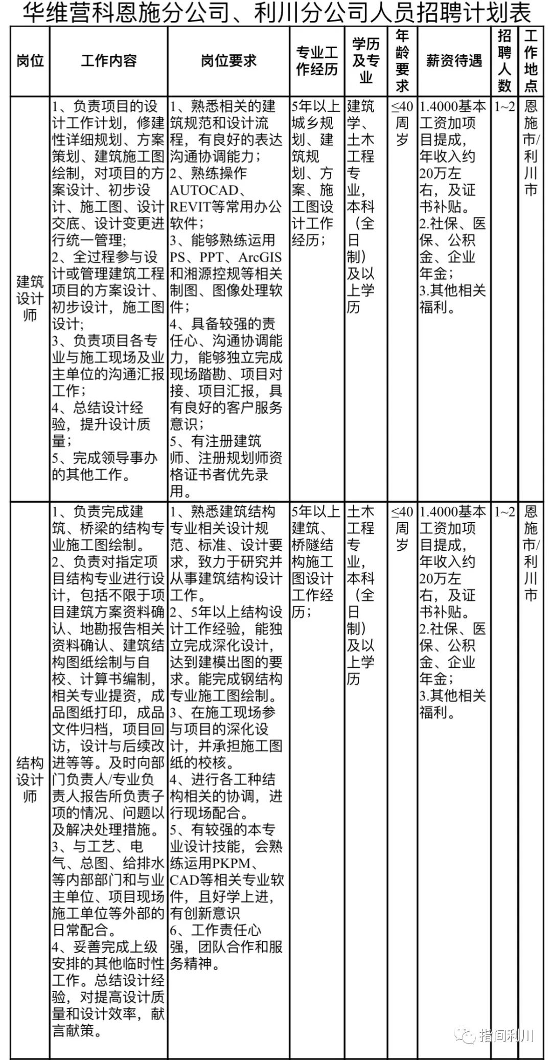 附件:华维营科恩施分公司、利川分公司招聘计划表