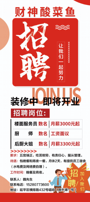 (长按二维码查看详情)▼【洗碗工 切配 收银员 传菜员 服务员】面议 招聘人数:若干