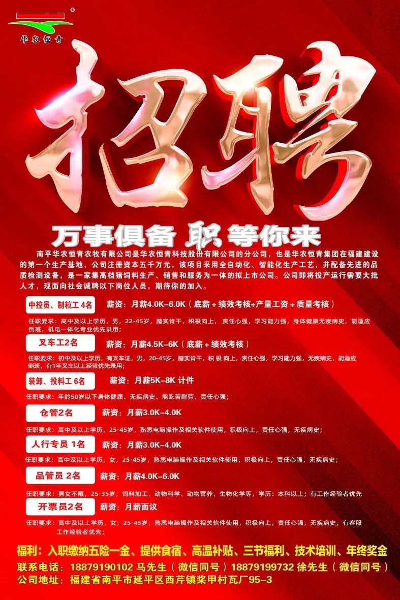 (长按二维码查看详情)▼【仓管 开票员 帮厨 中控员 叉车工 装卸 】3000-8000元 招聘人数:若干