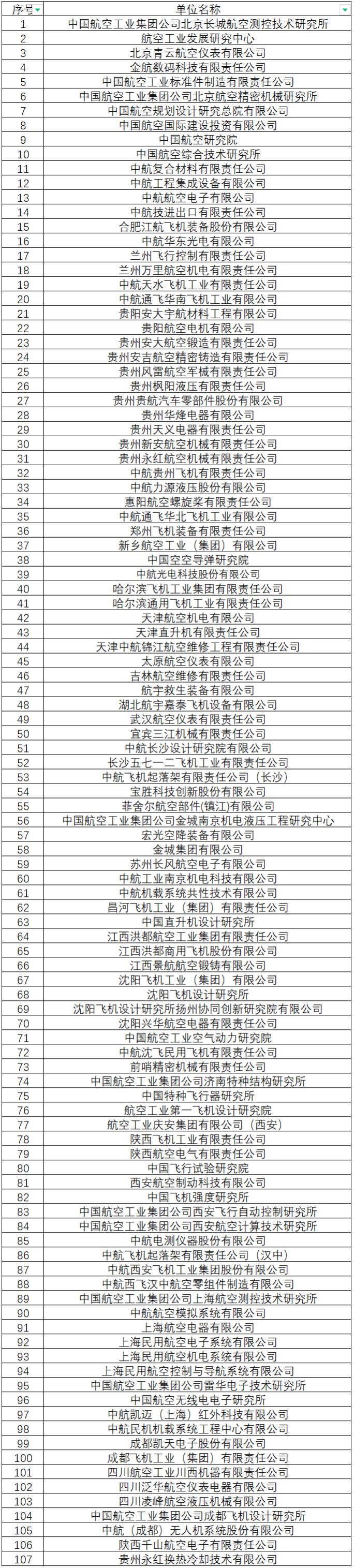 单位列表