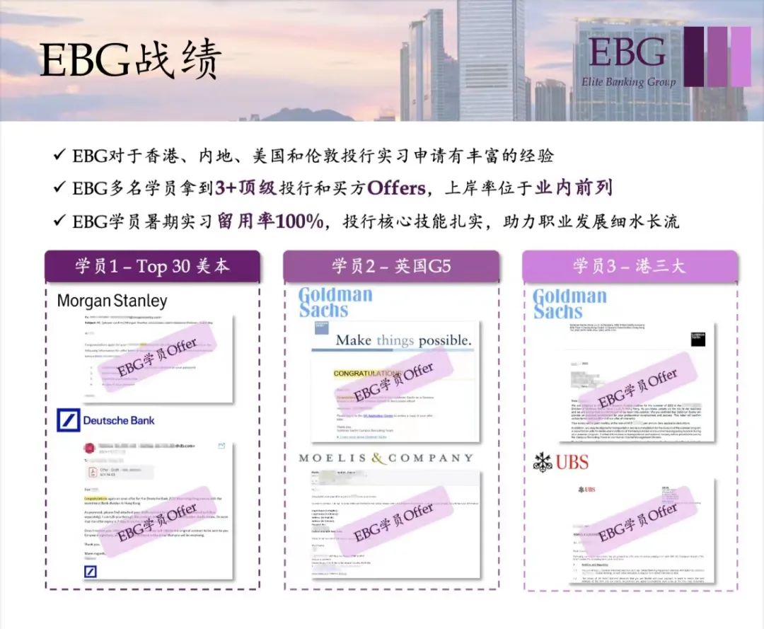 EBG已帮助数位学员上岸九大行和三中一华IBD,覆盖伦敦/纽约/香港/新加坡/北京/上海/深圳Office。