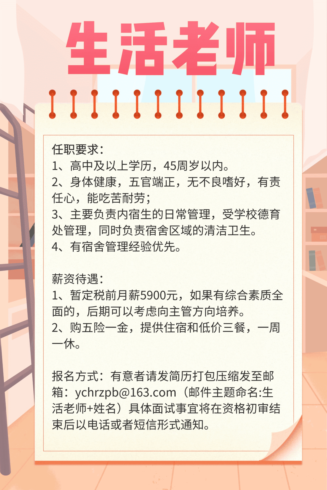 >【深圳招聘】提供食宿+月薪5900元左右!公办学校的生活老师!高中起报,有管理经验的来看~有升职机会!