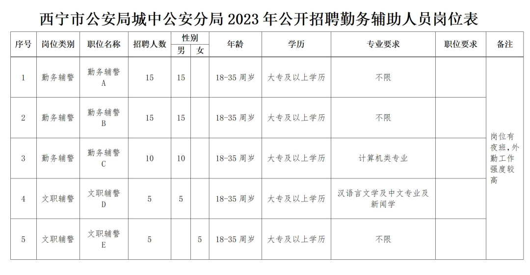 附:西宁市公安局城中公安分局2023年公开招聘警务辅助人员岗位表