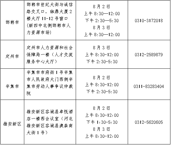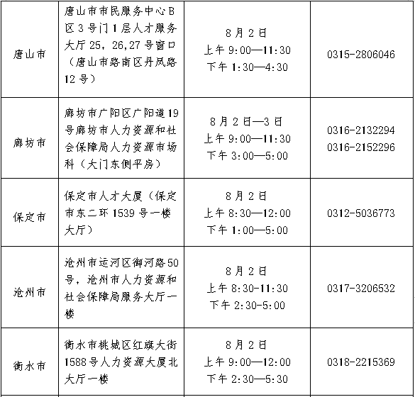 | 根据《2021年河北省“三支一扶”志愿者招募简章》和河北省新冠肺炎疫情防控工作要求,现将河北省“三支一扶”计划招募现场资格审核及面试有关事项公告如下: 一、笔试最低控制分数线 2021年河北省“三支一扶”计划招募笔试最低控制分数线为:支教岗位不低于33.76分、支农岗位不低于40.30分、支医岗位不低于31.14分、帮扶乡村振兴岗位不低于38.33分、水利岗位不低于41.54分、就业和社会保障服务平台岗位不低于35.47分。 笔试成绩在最低控制分数线以下的考生取消招募资格。 二、现场资格审核 进入现场资格审核的考生名单是按照岗位计划招募数与考生数1:3的比例,从达到笔试最低控制分数线的考生中,按笔试成绩从高分到低分排序确定的。比例内末位笔试成绩并列的一并进入审核。符合审核的人数不足1:3比例的,按照实际人数审核。 考生通过报名系统查询笔试成绩时即可知道是否进入现场资格审核。 考生需到报名岗位所在市完成现场资格审核,各地审核地点及具体时间安排见附件。现场资格审核时,考生需提供户口页(首页及本人页)、身份证、毕业证、学位证、就业报到证等能证明符合报名岗位所要求条件的材料原件及复印件(A4纸复印一份)。考生不能提供有关材料、提供的材料与报名信息不一致或提供虚假证件、证明的,取消招募资格。 审核过程中,如某一岗位因取消考生招募资格导致审核人数不足1:3比例时,将在同一岗位达到笔试最低控制分数线的考生中,按笔试成绩排序依次递补。请未进入现场资格审核的考生于8月2日9:00—3日18:00期间保持通讯方式畅通,如所报岗位需要递补,工作人员将第一时间联系考生进行现场资格审核。如因关机、停机等考生自身原因造成无法联络,将视该考生为放弃递补,并按排序将后一名考生进行递补。 三、面试相关事宜 通过现场资格审核的考生,即可进入面试。 (一)通过现场资格审核的考生请于8月5日9:00—6日17:00登陆报名网址打印《面试通知单》(报名网址:http://121.28.131.187:8035)。《面试通知单》要求打印清晰,黑白彩色均可。未在规定时间内打印《面试通知单》的考生视为放弃面试。 (二)面试定于8月7日全省统一进行,采取结构化面谈的形式,主要测评考生的综合分析能力、解决实际问题能力、应变与自我控制能力、语言表达能力等。面试采取“平均打分法”,即每组考官打分的平均分为考生的面试成绩。面试成绩于面试当日在面试地点公布。面试总分100分,低于60分的考生取消招募资格。 (三)面试具体地点及有关注意事项详见《面试通知单》,面试当天,考生须持有效居民身份证和《面试通知单》进入考场,缺少证件的考生不得参加面试。 (四)打印过程中遇到技术问题请与报名系统技术中心联系(联系电话:0311-87102235,咨询时间:上午8:30-12:00,下午13:30-17:30)。 四、考生健康管理事宜 (一)考生应自觉配合做好疫情防控工作,不得隐瞒或谎报旅居史、接触史、健康状况等疫情防控重点信息。 (二)考生根据《面试通知单》要求自觉配合考场疫情防控工作,不得隐瞒或谎报旅居史、接触史、健康状况等疫情防控重点信息。 (三)进入审核场所及面试考场后,考生应全程佩戴口罩,做好个人防护,但是在身份核查以及面试时须摘除口罩主动配合。考生在参加考试过程中出现发热、咳嗽、乏力、鼻塞、流涕、咽痛、腹泻等症状,应及时向考务工作人员报告,并服从考务人员安排。 请考生自觉做到诚实守信,考试前注意做好个人防护,合理选择交通方式出行,以免影响考试。凡违反《传染病防治法》《新型冠状病毒肺炎防控方案》等法律法规和相关防范措施,刻意隐瞒病情或者不如实报告发热史、旅居史和疫情接触史等疫情防控重点信息的考生,将承担相应法律责任。 本公告发布后,如疫情防控态势突发重大变化,将按照上级指示精神,及时通知调整变更相关工作安排。 附件:各地现场资格审核具体地点及时间 河北省人力资源和社会保障厅 2021年7月30日 附件: 各地现场资格审核具体地点及时间